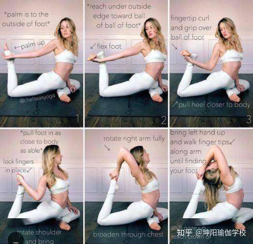 打开身体前侧肌群,对于腿部力量和手臂肩膀的稳定都有很高的要求,尽量的多打开胸腔,避免腰椎的挤压。