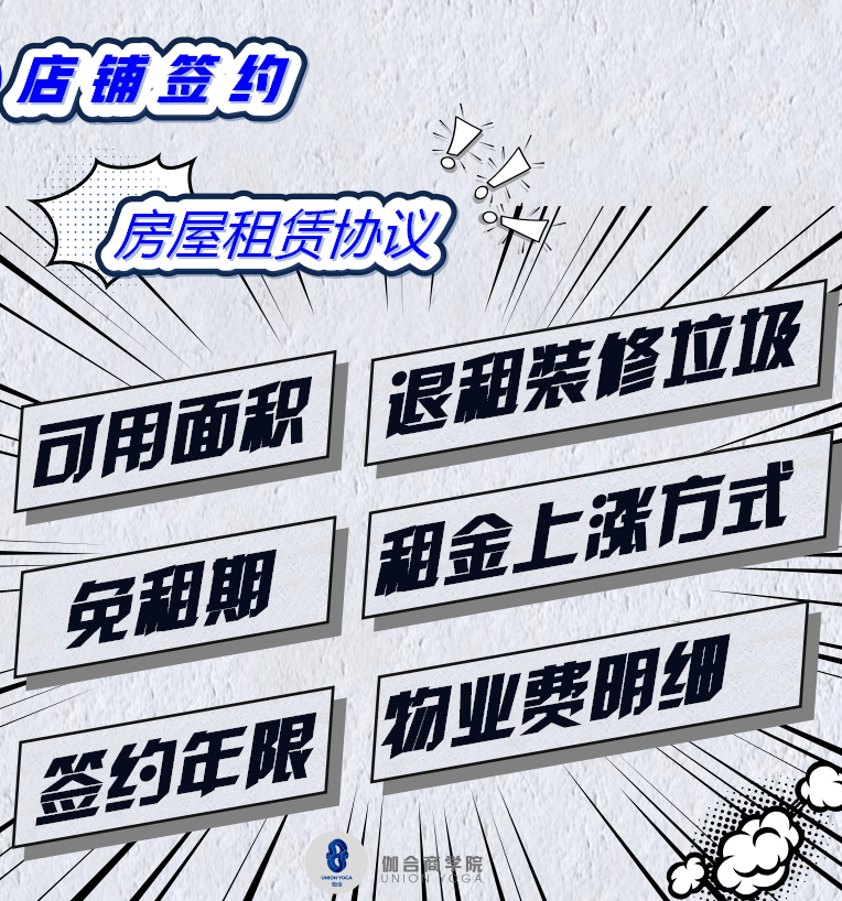 退租的时候装修是否要拆了自己清除、免租期多少个月,未来租金上涨的比例是多少,签约年限是多少,物业里面都包含了哪些内容以及具体费用,这些谈好之后一定要落实在合同上,并且每一条都要仔细确认。不然最后掏钱的时候就不是那回事了。